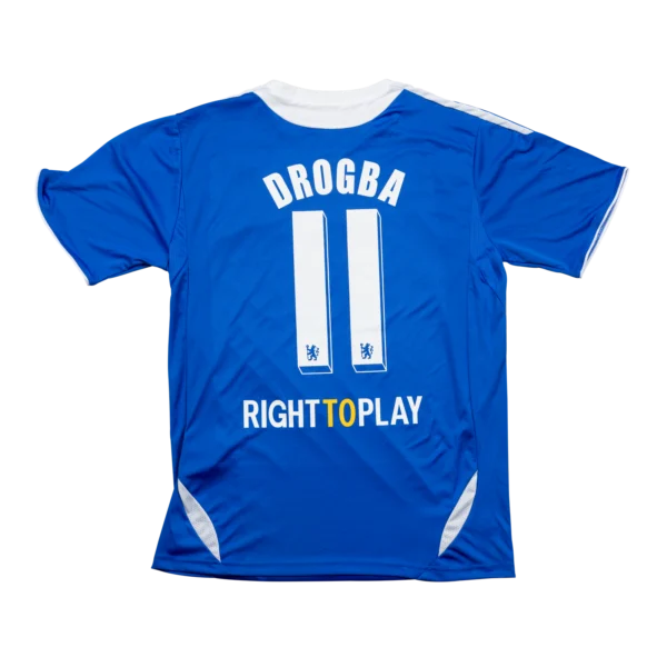 Marineblaues Olympique-Marseille-Auswärtstrikot 2009/10 von adidas mit hellblauen 3-Streifen, gelbem Piping und DIRECT ENERGIE Sponsor auf der Brust. Offizieller Ben Arfa 10 Ligue-1-Flock mit LFP-Patch und Intersport-Rückenprint, Climacool-Stoff ohne…